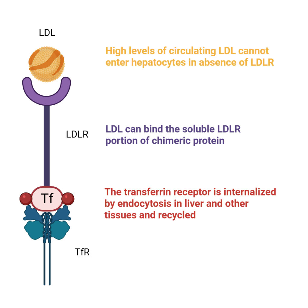 Kimeragene is based on a functional bypass strategy. The engineered fusion protein combines the extracellular domain of LDLR with transferrin. This design enables binding of circulating LDL particles and their internalization through transferrin receptor (TfR)-mediated uptake.